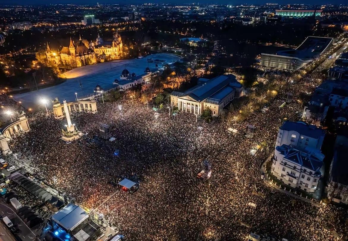 据美联社报道,匈牙利议会选举前夕,布达佩斯举行了大规模反对派抗议音乐会。在英雄广场及周边街道聚集了超10万人。