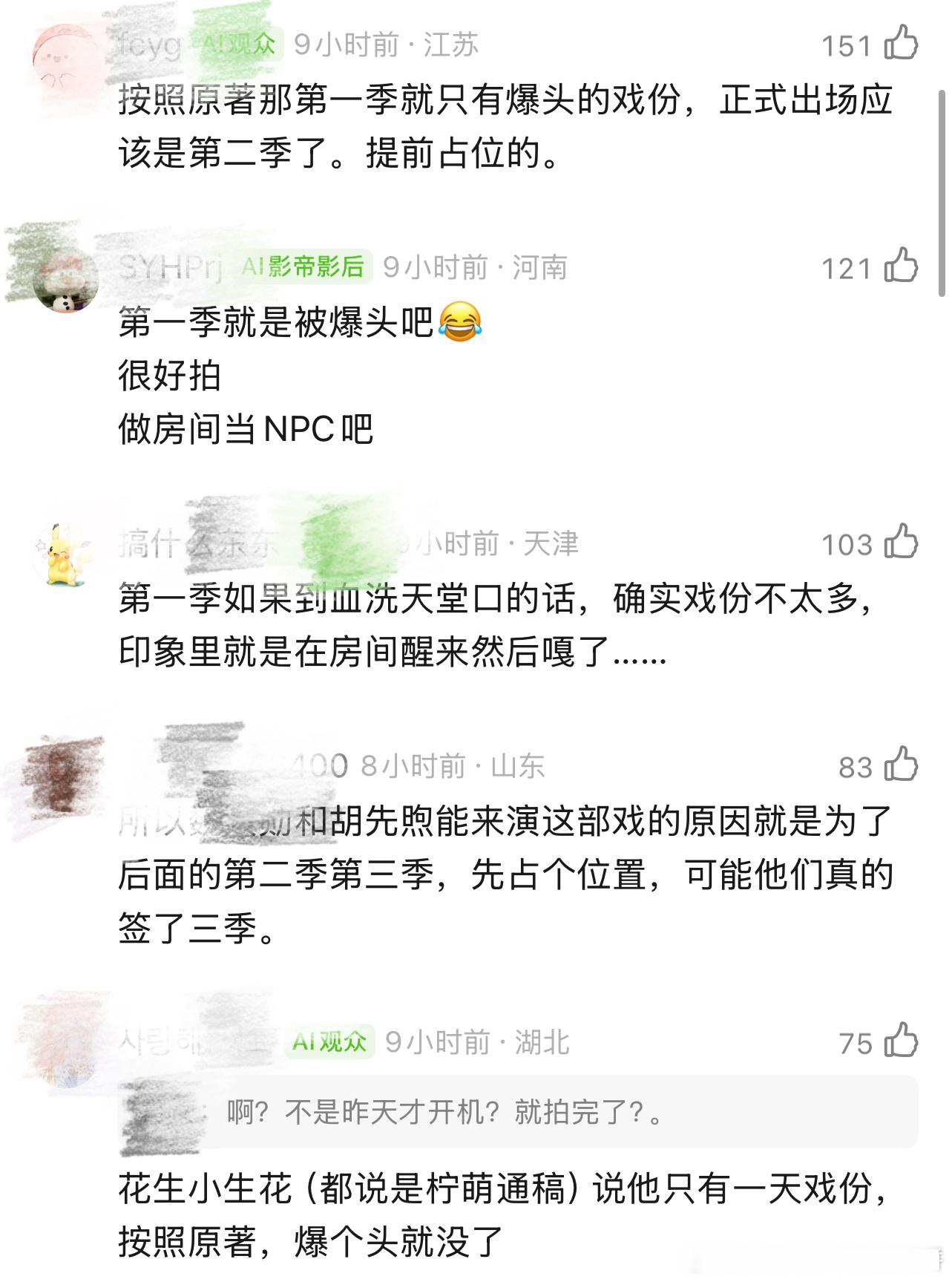 胡先煦的《十日终焉》戏份已经杀青啦?(这么看的确有可能说签了3季)
