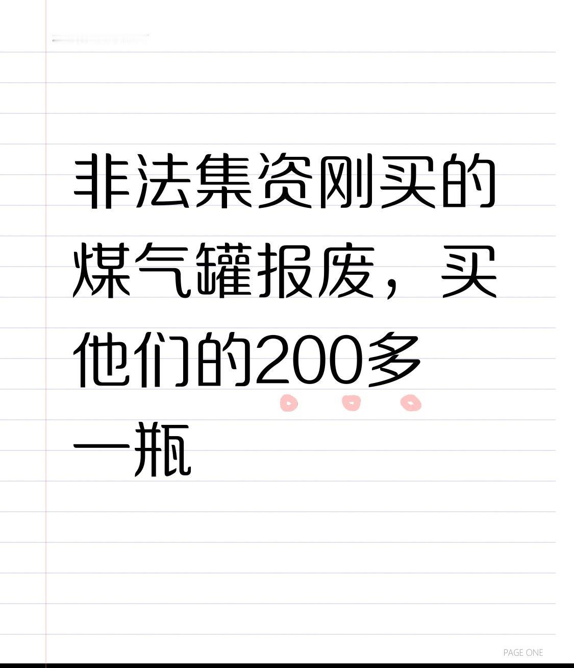 真倒霉,我刚从非法集资那花200多买了煤气罐,结果是报废的。这非法集资的人太坑了,正常煤气罐哪有这么贵,还买到个废品。