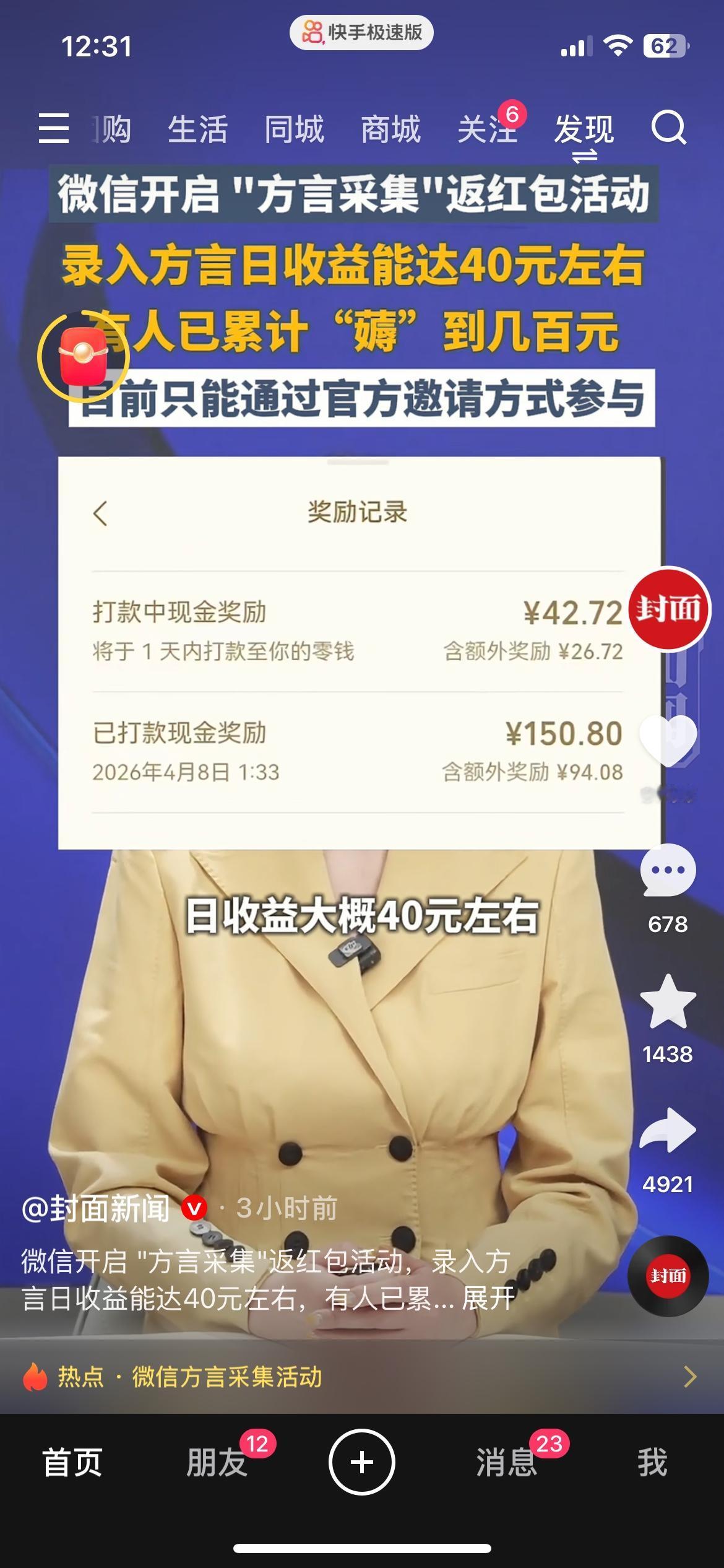 微信方言采集返红包,日入40元,有人赚了几百,普通人能参与吗