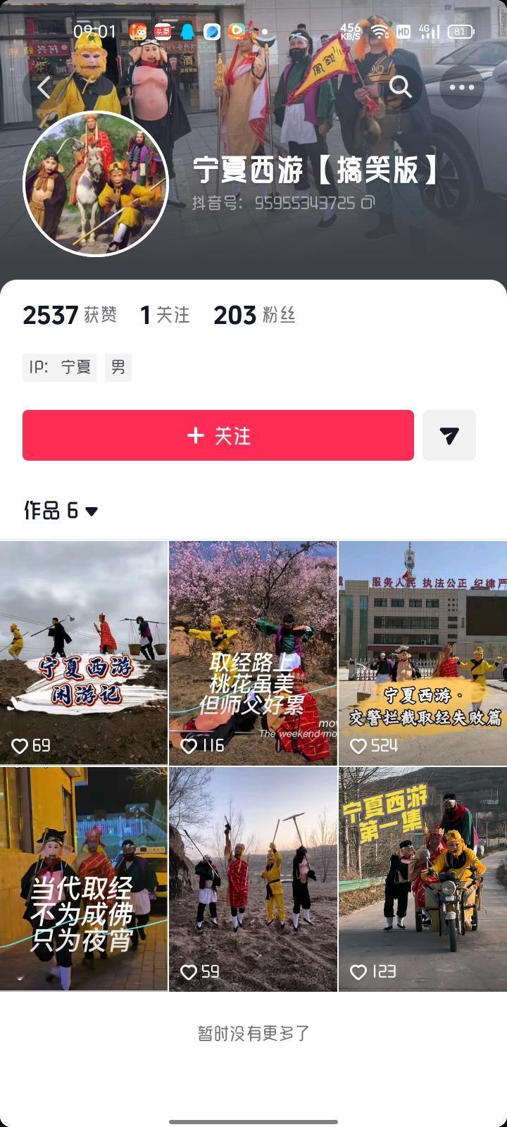事后,“宁夏西游”又发布一则取经失败视频,并表示:西天路远,安全为先。三轮车不载人,平安才能取真经