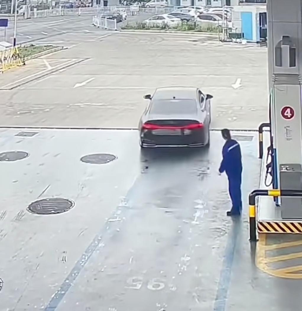 视频显示合肥一个加油站,一辆奥迪车加完油跑了,可怜的加油员奋力追赶,跑出去了好远,结果一无所获。