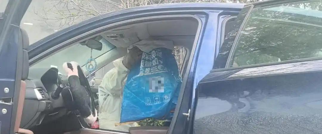 随后,一名穿戴专业防蜂服的消防员利用密封袋、杀虫喷雾等工具,迅速将密封袋套住蜂巢,小心翼翼地将蜂巢完整剥离并扎紧袋口,成功转移至无人区域妥善处理,同时对车内残留蜂群进行消杀。