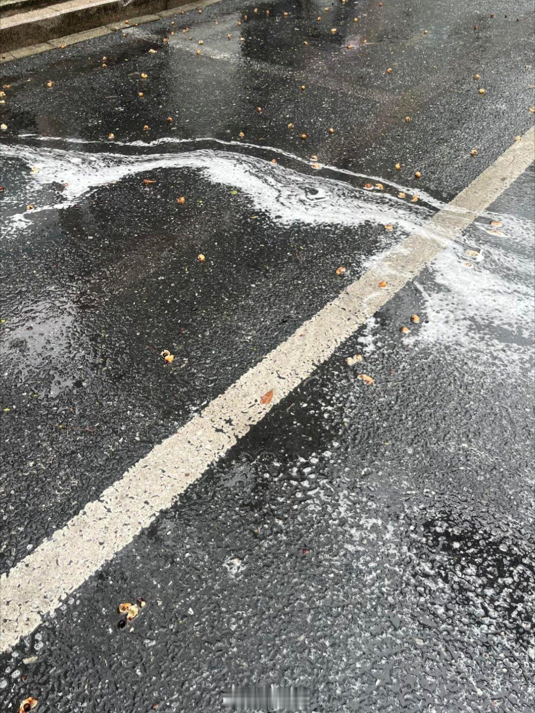 无患子果被风吹落,下雨天被车辆碾过,然后就和春雨一起洗地啦!鲁迅小时候对皂角树念念不忘,现在可以带小朋友捡点无患子,做点手工肥皂,也是一种很好的童趣和回忆。