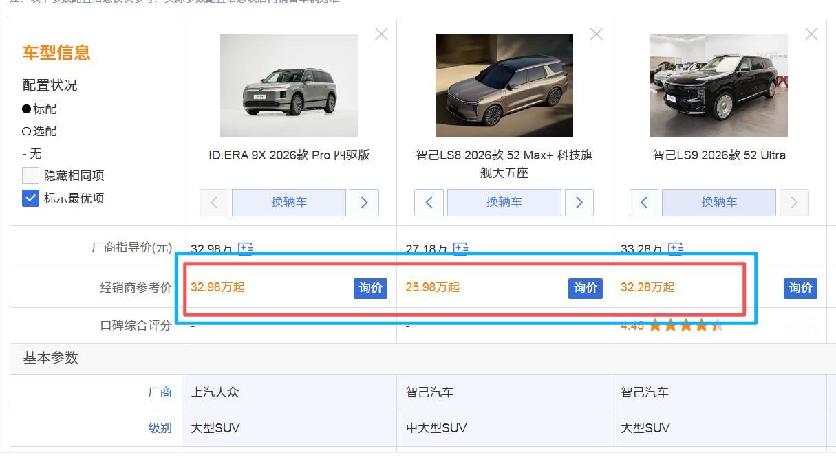 上汽大众ID ERA 9X跟理想L9,问界M9相比,确实便宜了不少,但是跟智己L