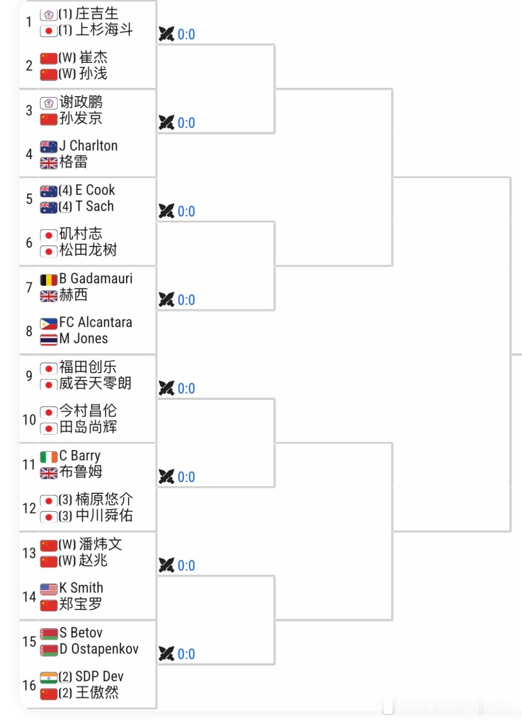 另外🇨🇳王傲然搭档印度选手男双2 号种子, 🇨🇳孙发京/谢政鹏 继续组队参赛