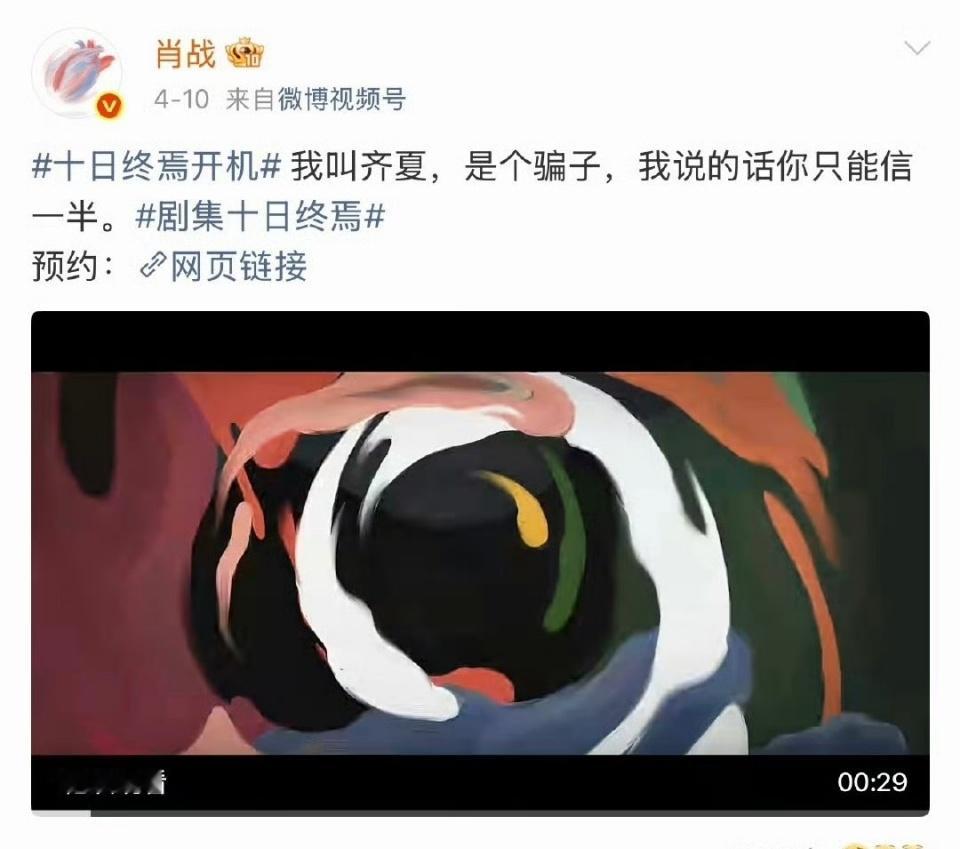 肖战十日终焉微指破亿 肖战《十日终焉》开机第三天已经达成两个破亿成就,分别是首部微博指数破亿剧集和肖战齐夏官宣视频的播放量破亿,太牛了!这恐怖的人气!