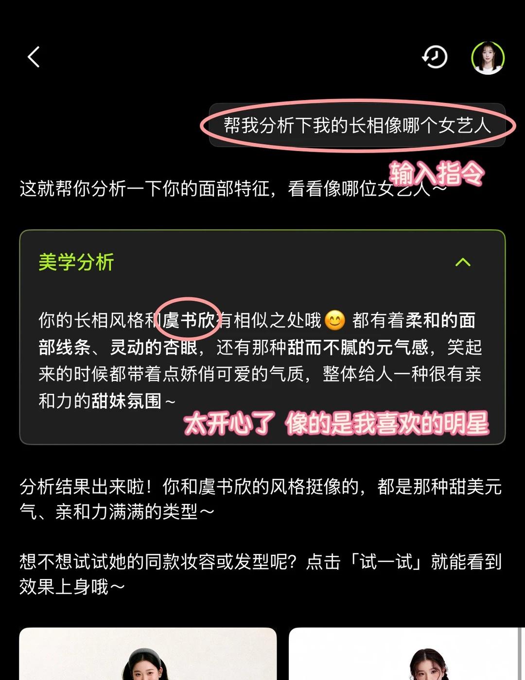 大家看看像不像虞书欣 找到了对标博主~ AI造型室 交了作业都发财