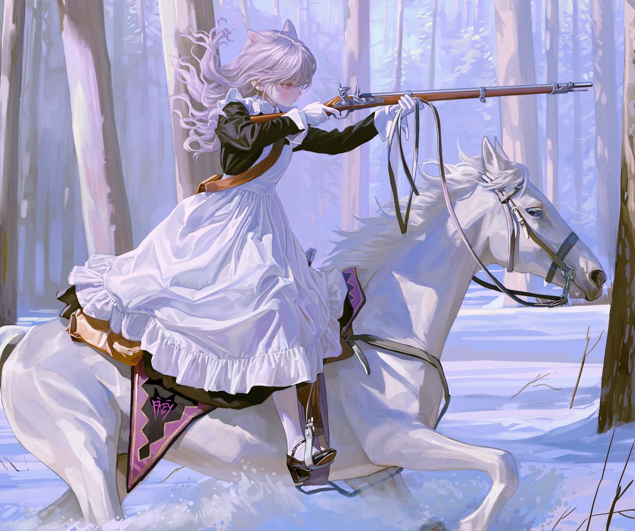 注2:图中女仆使用的枪械看上去是燧发枪(参见图5)。《临高启明》中穿越者(元老)的自卫武器应该是 Glock 手枪,或者 S&W 转轮手枪。女仆应该和伏波军一样,使用更为先进的火帽击发枪(percussion cap gun,参见图6)。