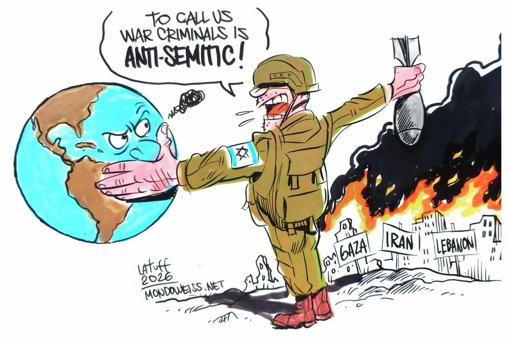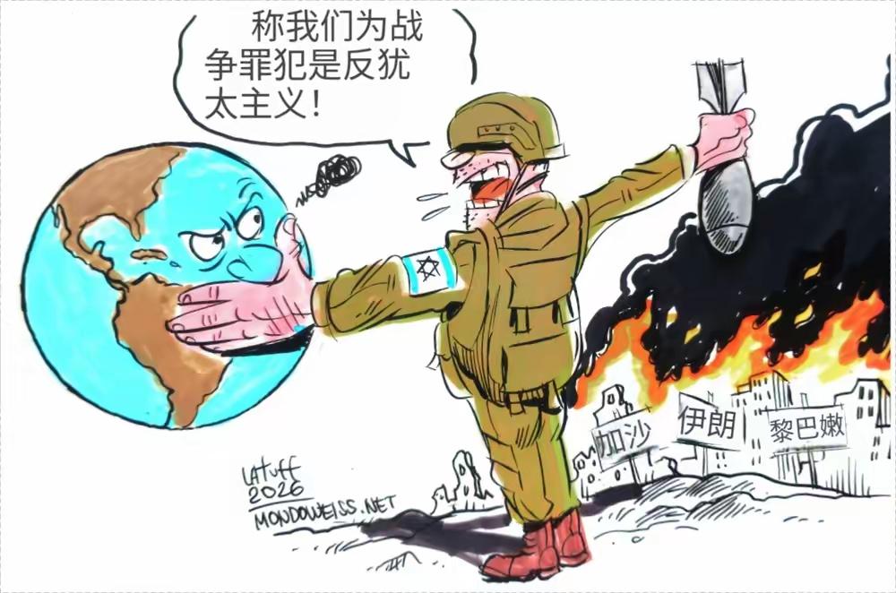 以色列在加沙、黎巴嫩和伊朗等地肆意制造破坏与死亡,与此同时,却凭借“反犹太主义”的指控,妄图压制国际社会对其“战争罪行”的批评。作者以此批判以色列的双重标准与暴力行径。