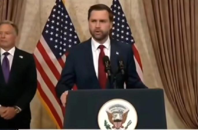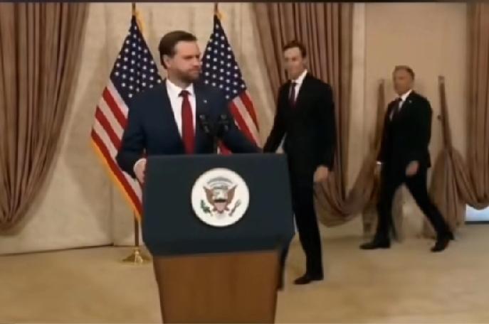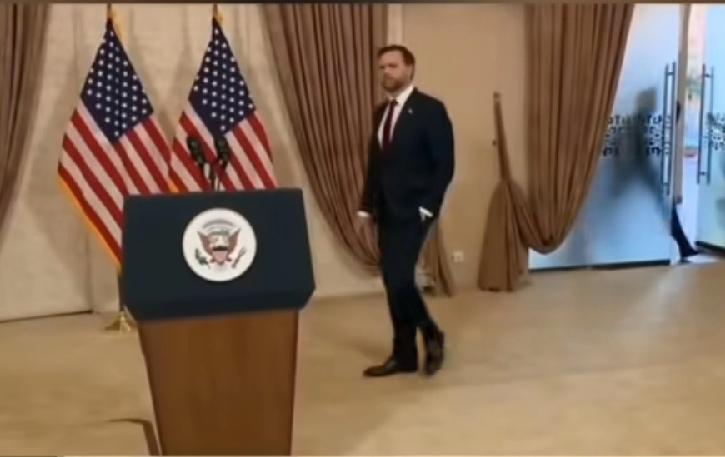 万斯单手插兜,召开伊朗谈判新闻发布会,一个人快步先进门了,看表情很不高兴,威特科