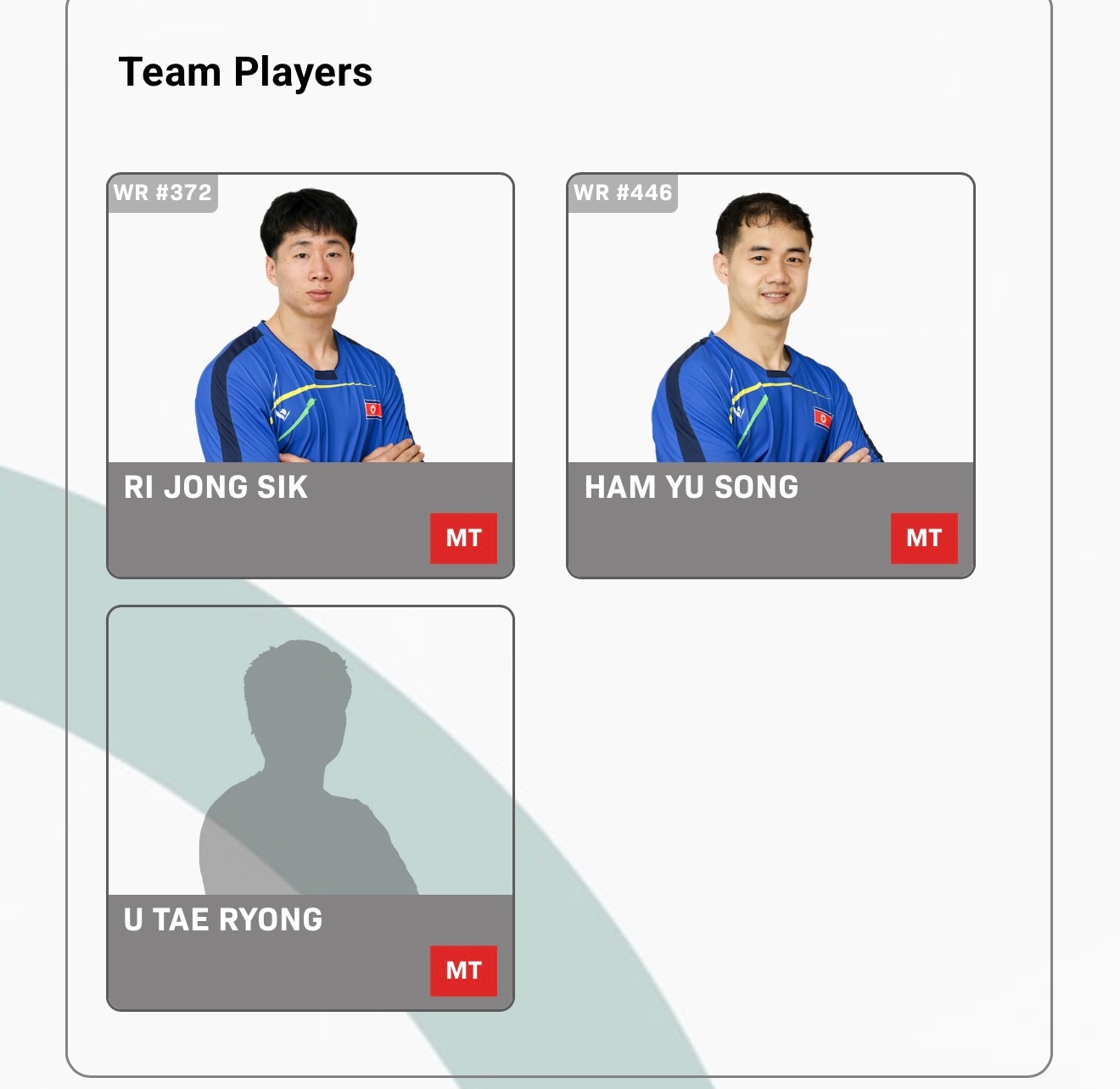 2026伦敦世乒赛朝鲜队报名男队:李正植 咸有成 于太勇女队:金琴英 边松景 车秀英