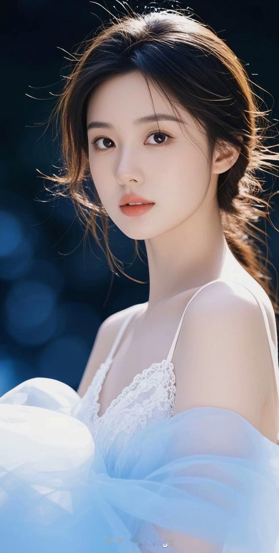 优雅蓝调,精致妆容,复古耳环,时尚穿搭