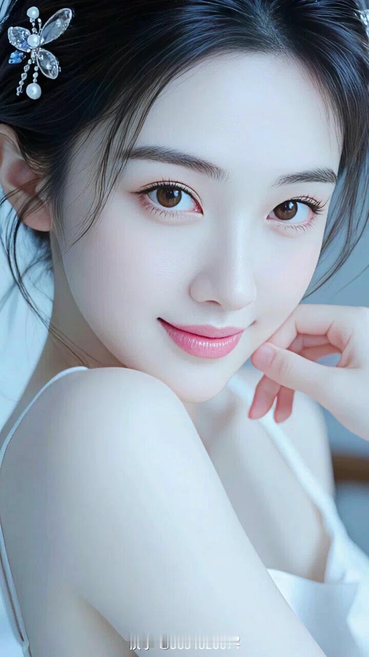 优雅红唇,甜美笑容,红宝石耳坠,白色礼服,气质非凡!