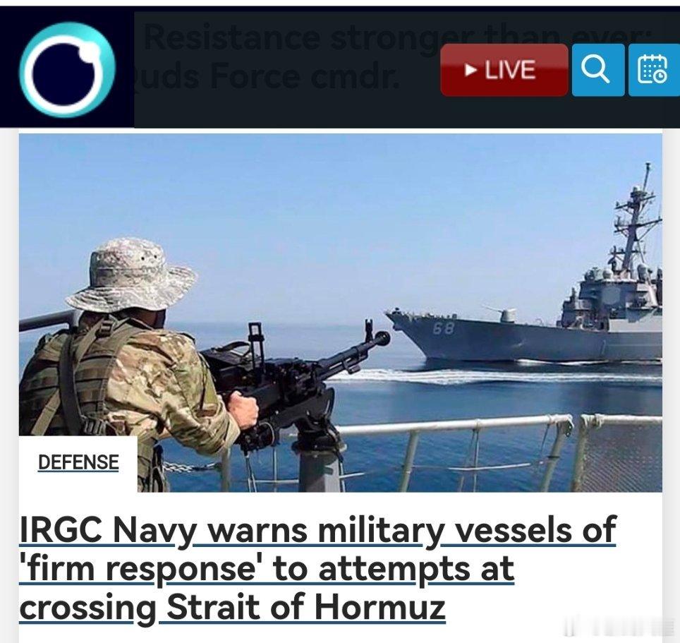 美伊谈判21个小时伊斯兰革命卫队海军警告军舰,对于试图穿越霍尔木兹海峡的行为将采取“坚决回应”措施。