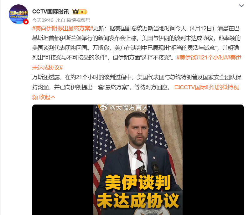 美向伊朗提出最终方案 怎么连光头蒋都不如,蒋还知道“战场上打不赢,谈判桌上怎么谈,结果都是一样的”伊朗通报谈判进展,伊朗称谈判未果因美贪婪与野心,热点观点