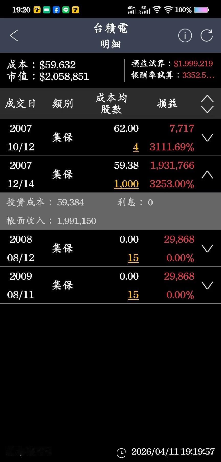 台湾网友发文称:想起前陣子整理我爸媽股票帳戶,居然有1000股台積電是2007買