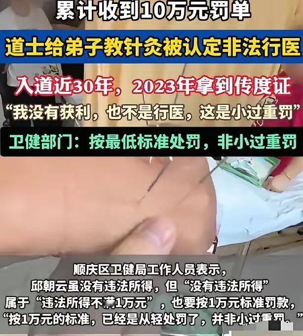 四川南充,一位61岁的老道爷,因为教徒弟针灸,被人举报非法行医,罚了5万,老头气不过,外出云游去了,结果罚款没交,又给加了5万,变成十万了!他这才急了眼,赶紧去申请复议,说罚得太重。