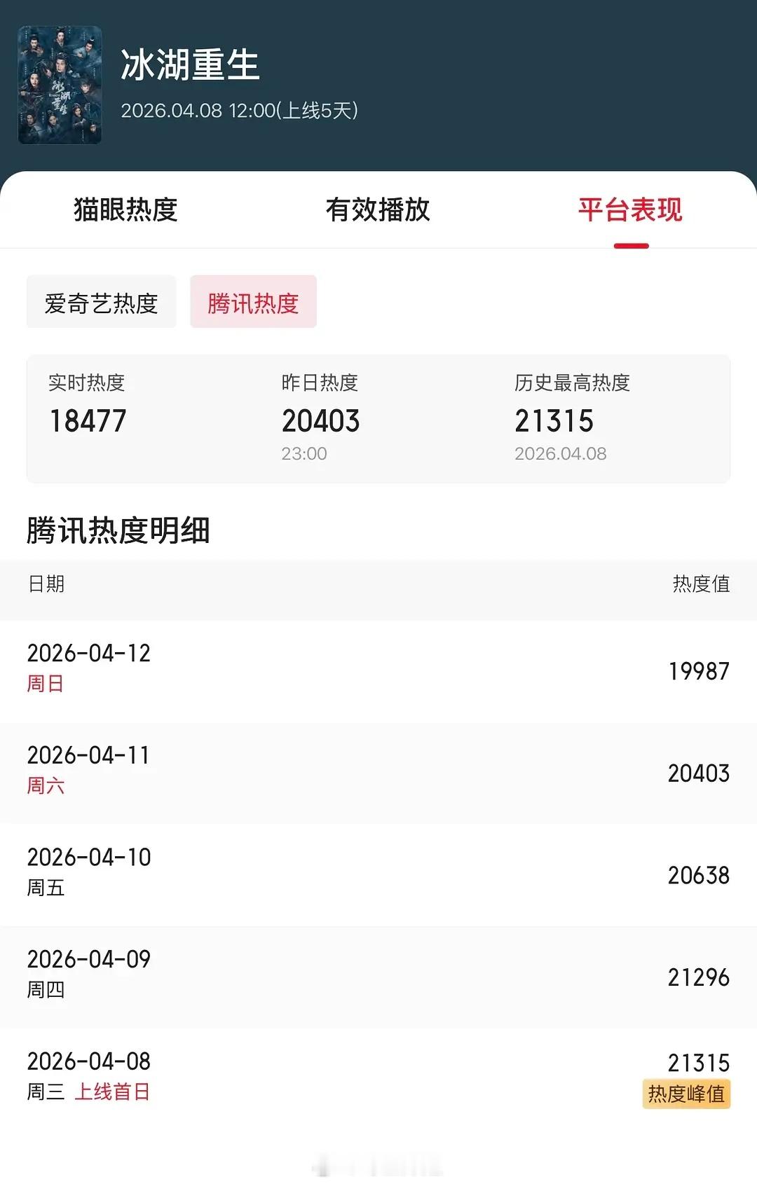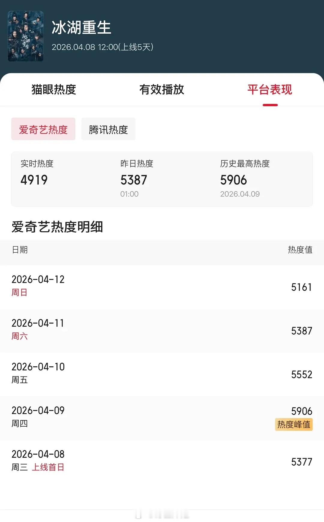 冰湖重生还有救吗?昨天周六居然也在下降⬇️扑成这样的双平台古偶,有先例吗?