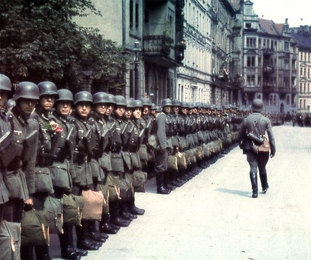 照片拍摄于1941 年的法国巴黎,记录了一支德国国防军部队在出发前往东线战场前的集结瞬间。