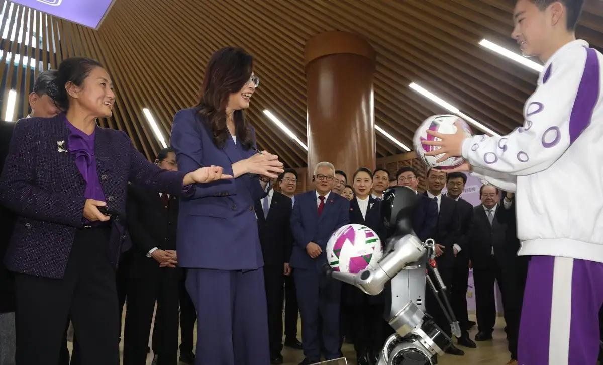 郑丽文这次访问大陆,获得了C919模型,一对机器手,还有清华大学送的足球,这又获得一个小米车模。