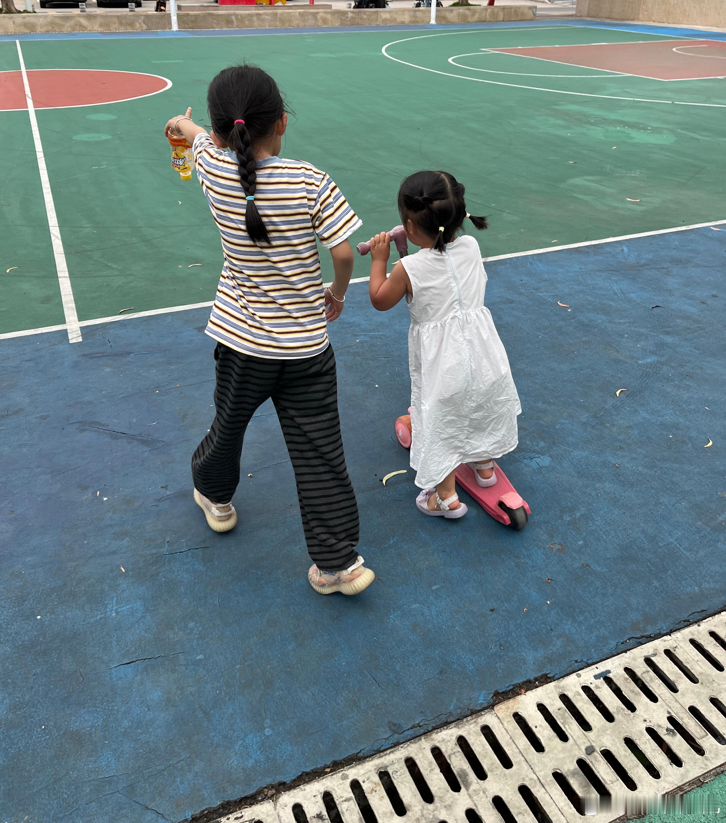 社牛在哪都可以交到朋友,柠宝问我,能不能骑这个滑板车,我说你问姐姐,姐姐同意才可以,这是姐姐的车。