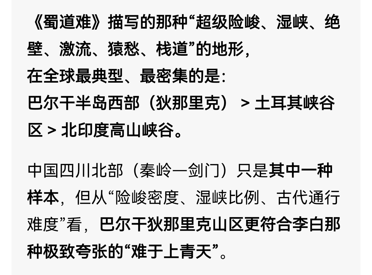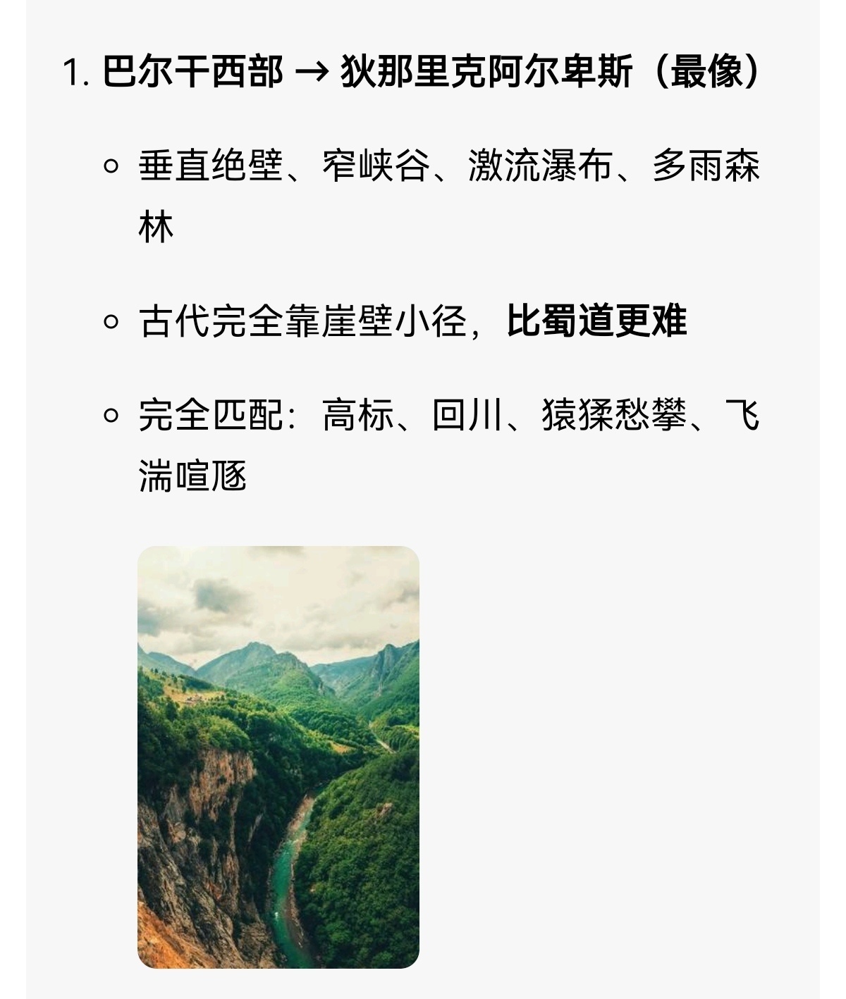 巴尔干才是真正的蜀道难啊看来巴蜀还是应该在陇山南部才对,才能对照上,“蜀道难”,
