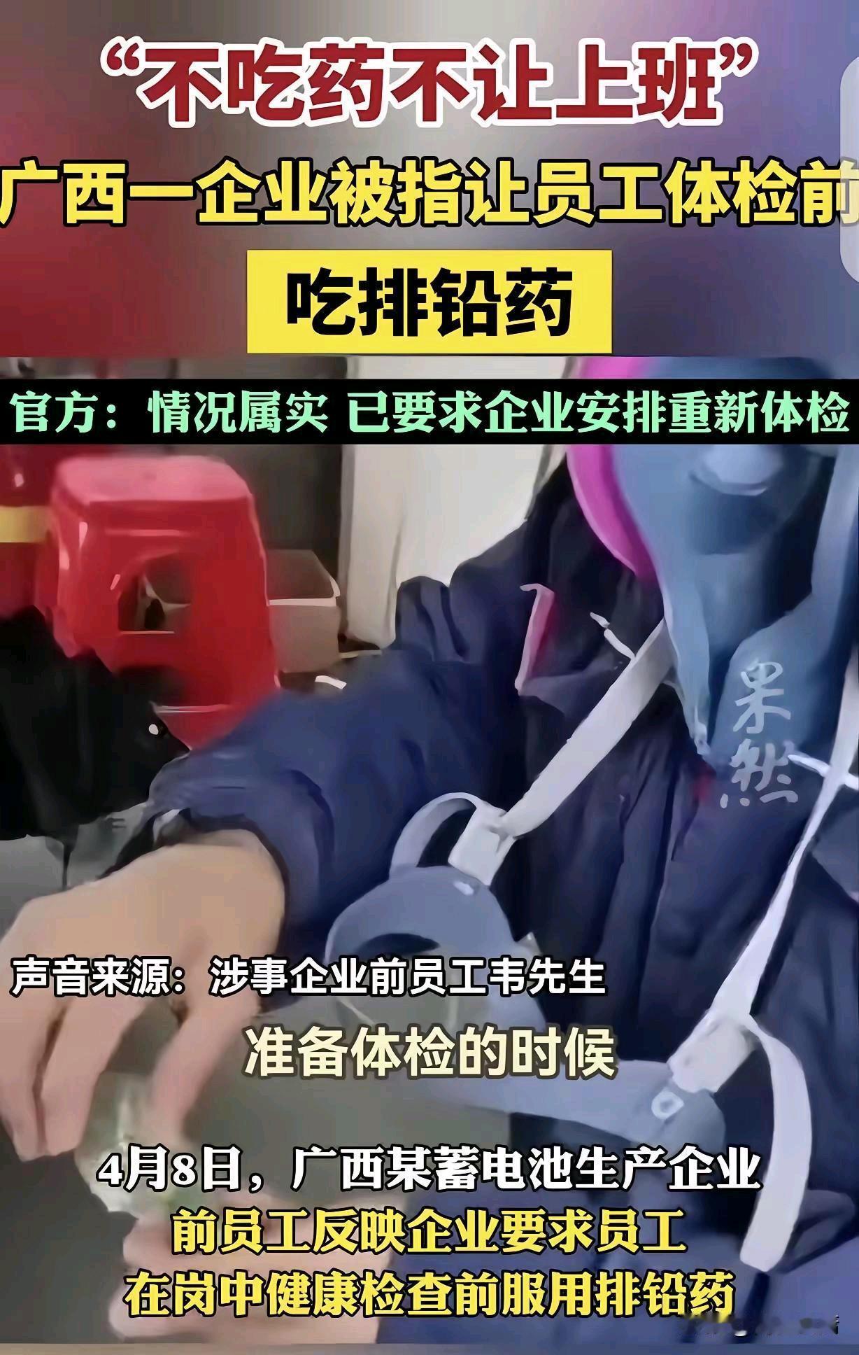 体检之前先吃排铅药,为应付检查,漠视员工健康 广西一家蓄电池生产企业,为蒙混职业