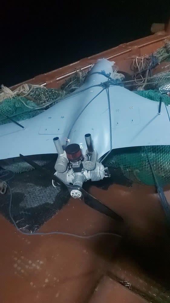 据报道,波斯湾渔民在渔网中捕获了一架以色列无人机;