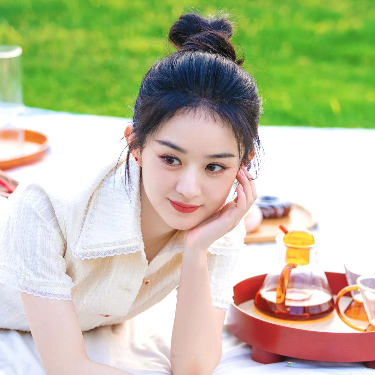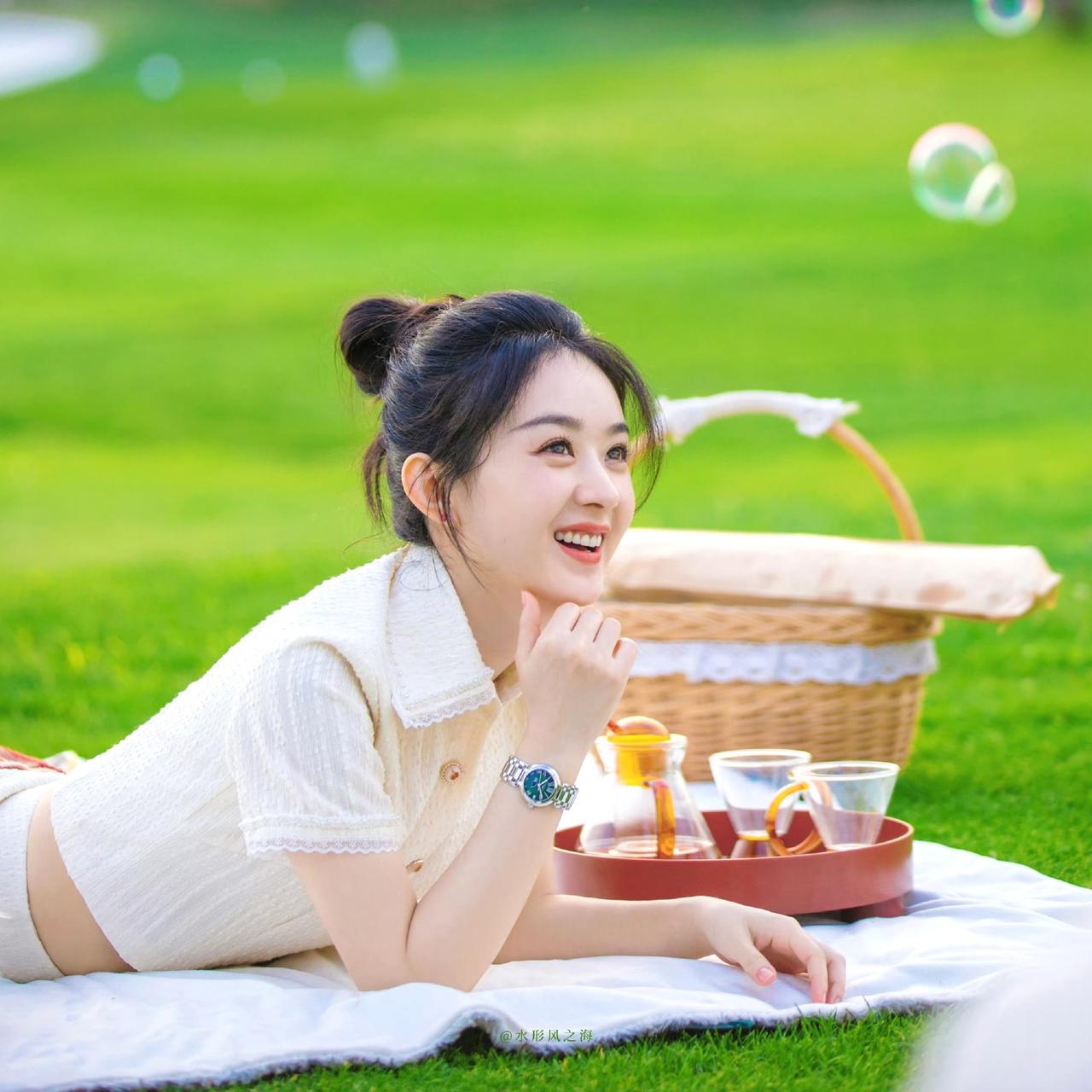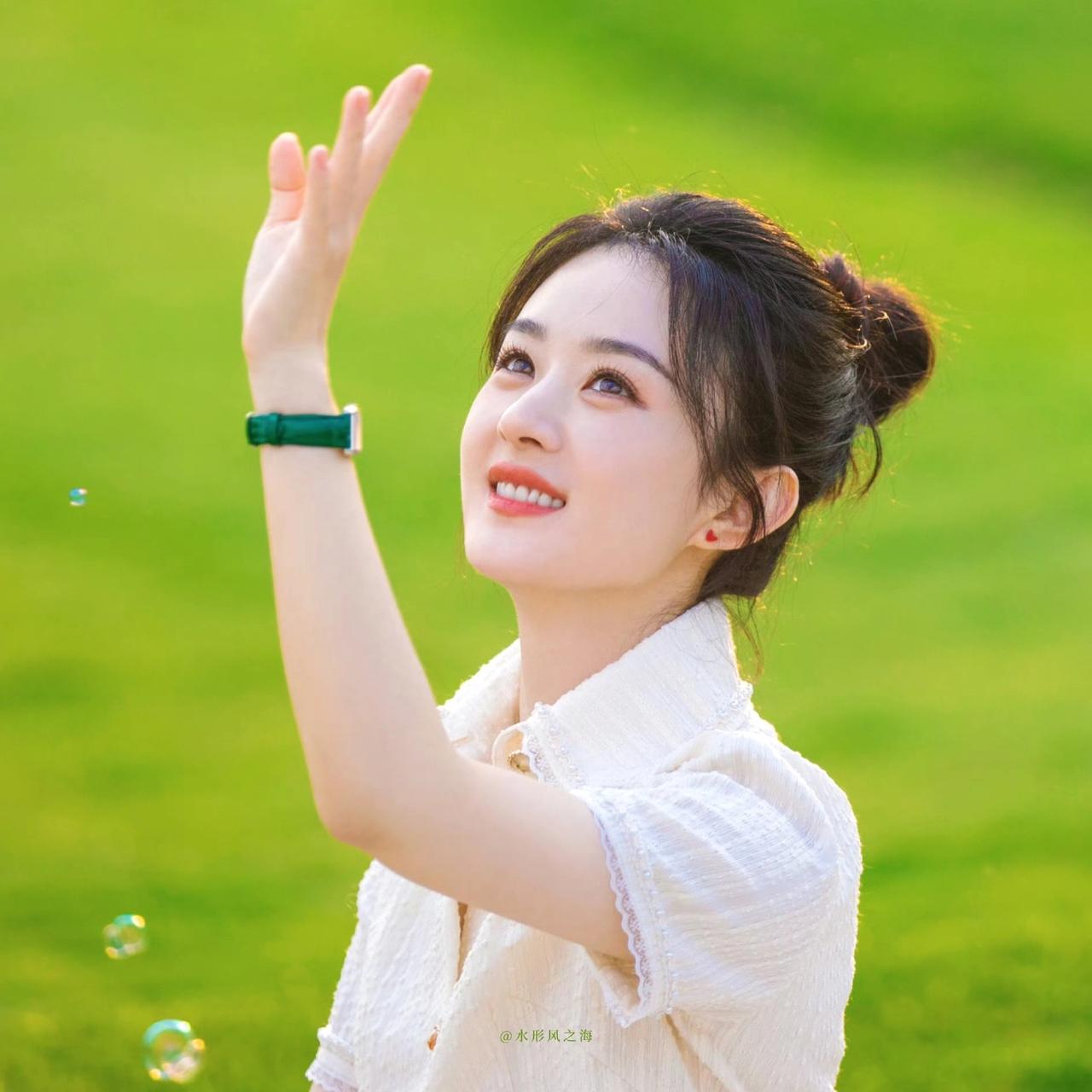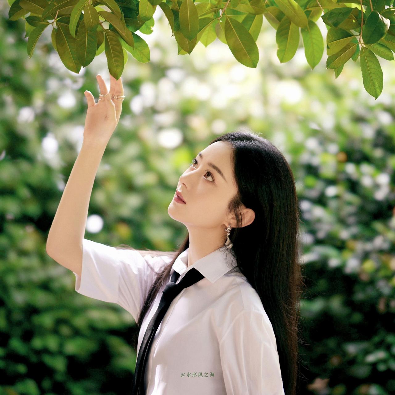 把春日的温柔、夏日的清冽,都揉进赵丽颖的绿色系镜头里。