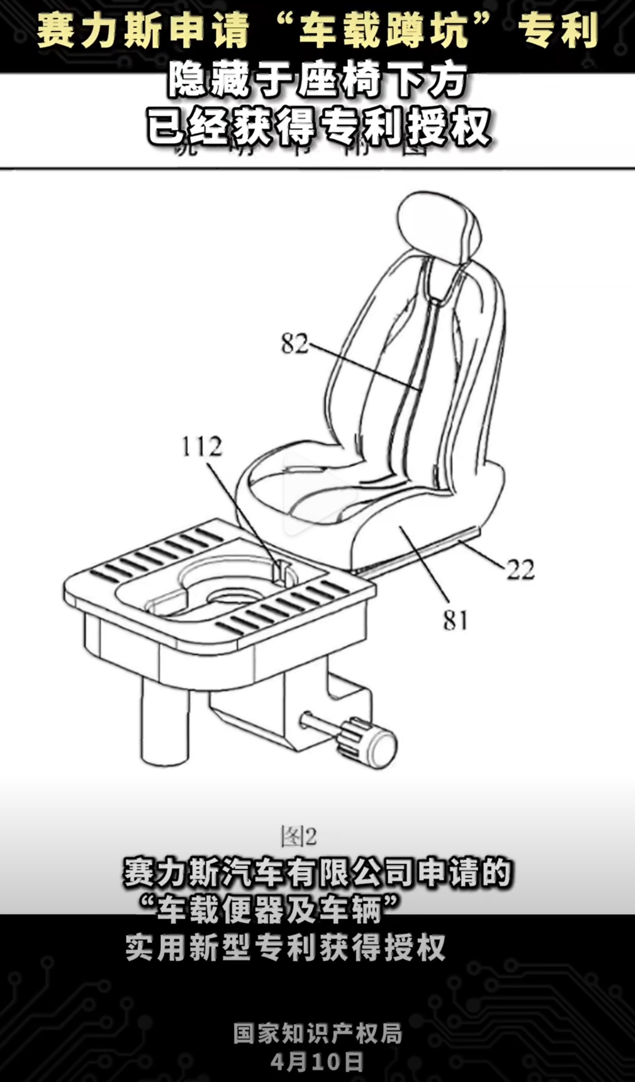 赛力斯申请新专利:汽车座便器蹲便器隐藏在座椅下方,何意味?赛力斯将推出车载厕所
