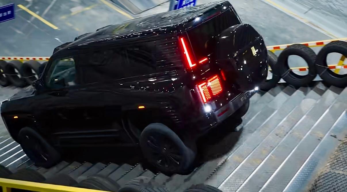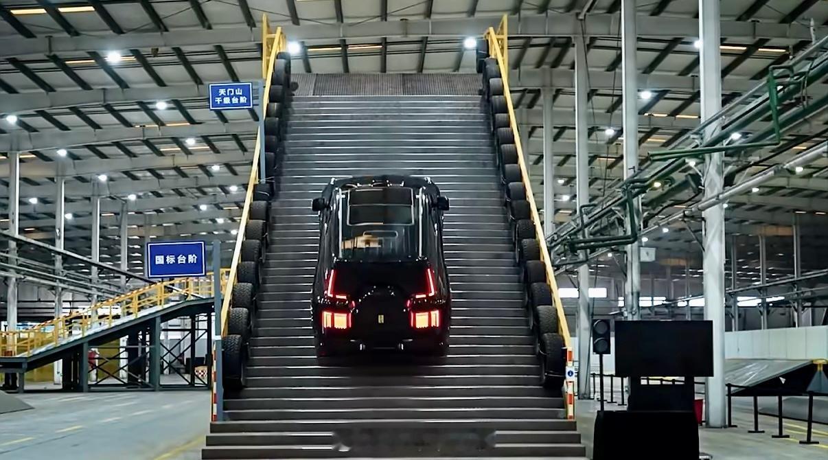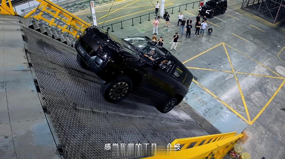 在一万多平米的越野测试中心里,仿造了全球100多种最难走的烂路。用钢板搭的天梯,最陡35度,台阶窄还特别滑,车轮根本不好抓地。旁边还有个45度的陡坡,越用越滑,人站上去都晃。