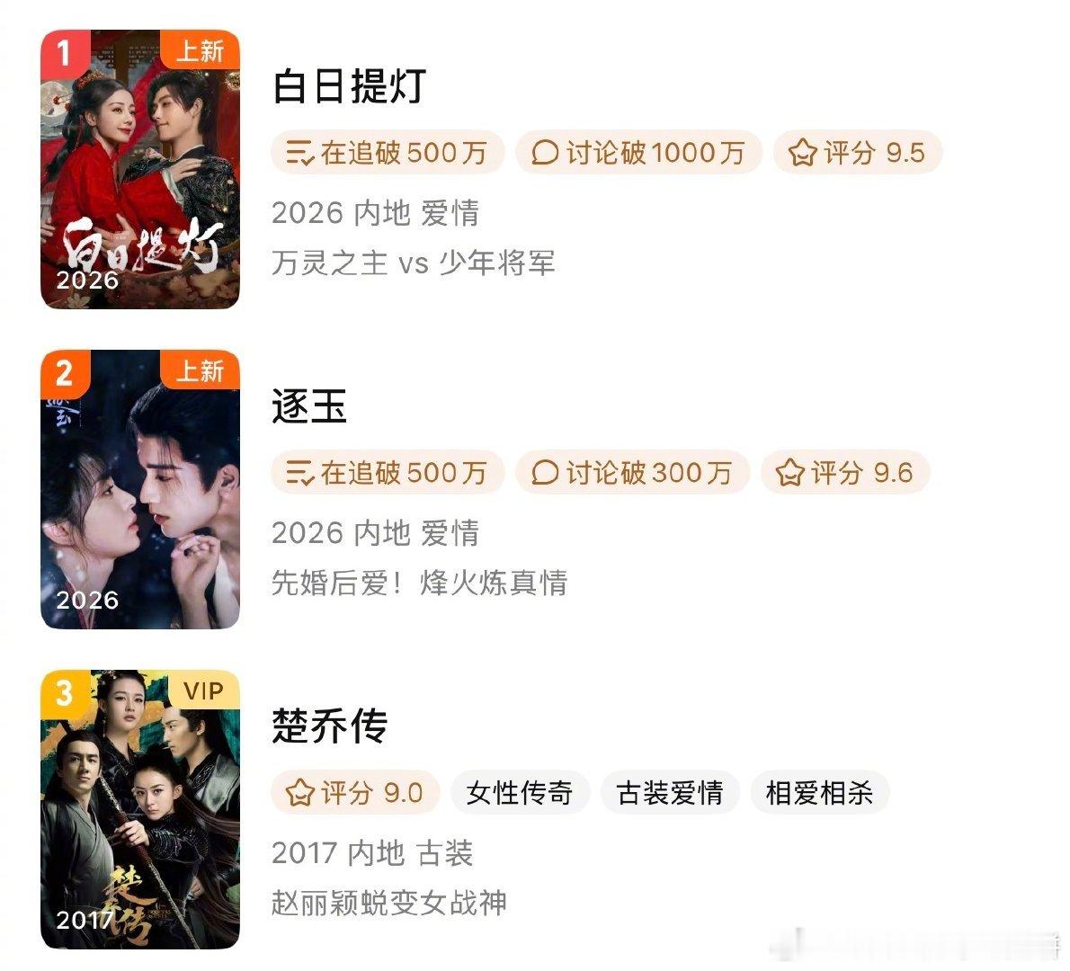 赵丽颖、李沁主演楚乔传在🐧热度居然排第三了还一直在涨下沉市场我也一直在刷到切片