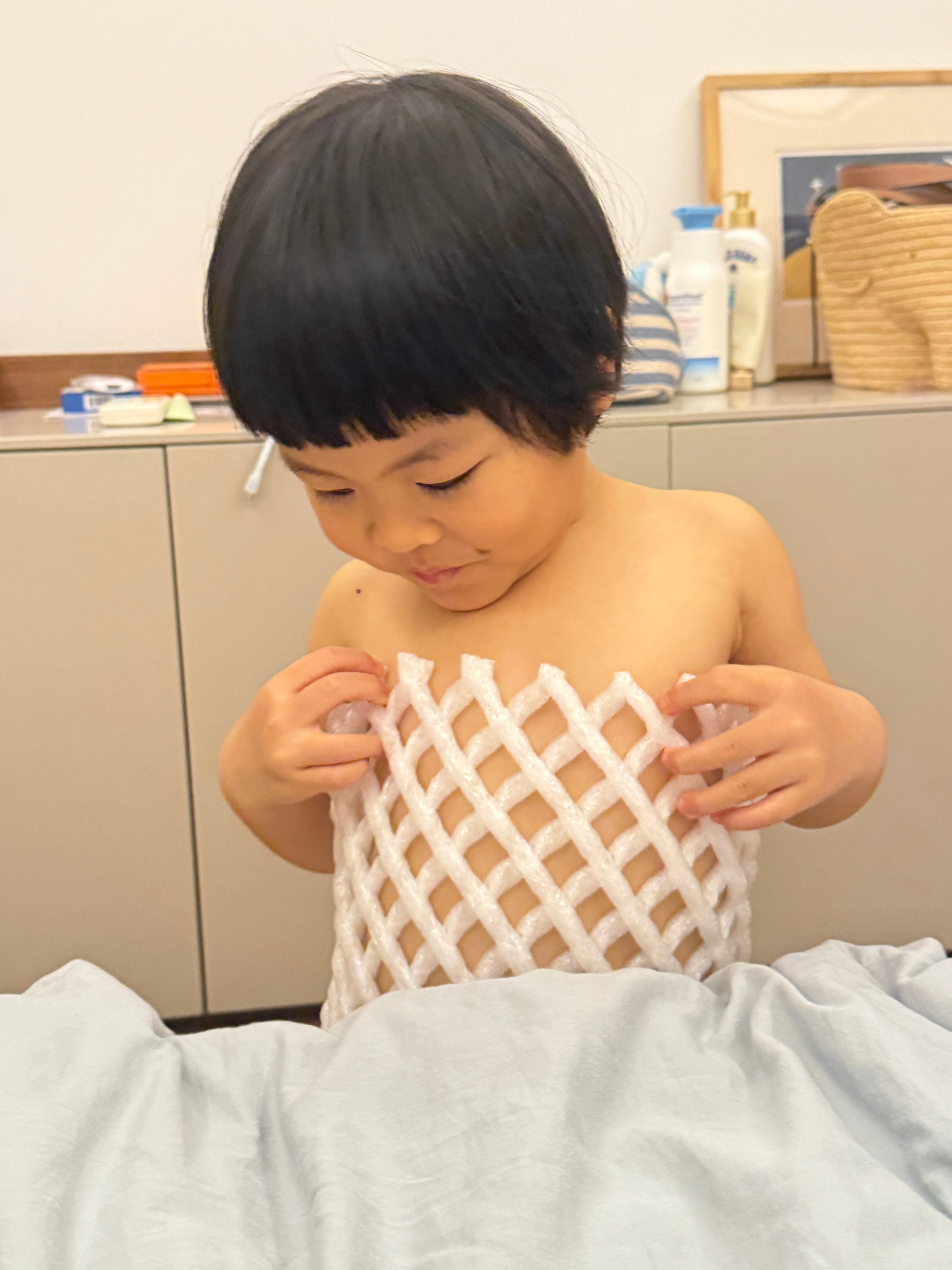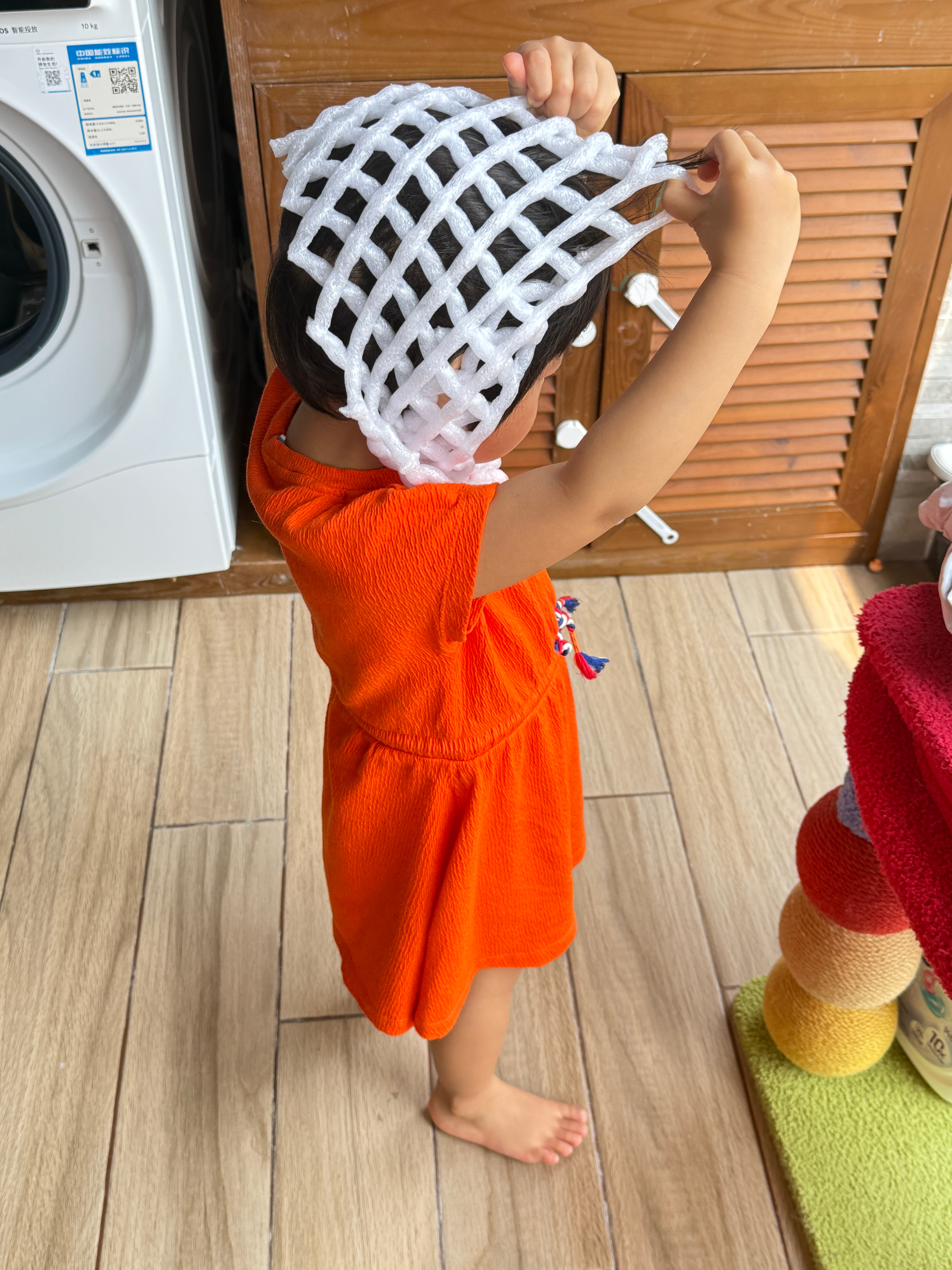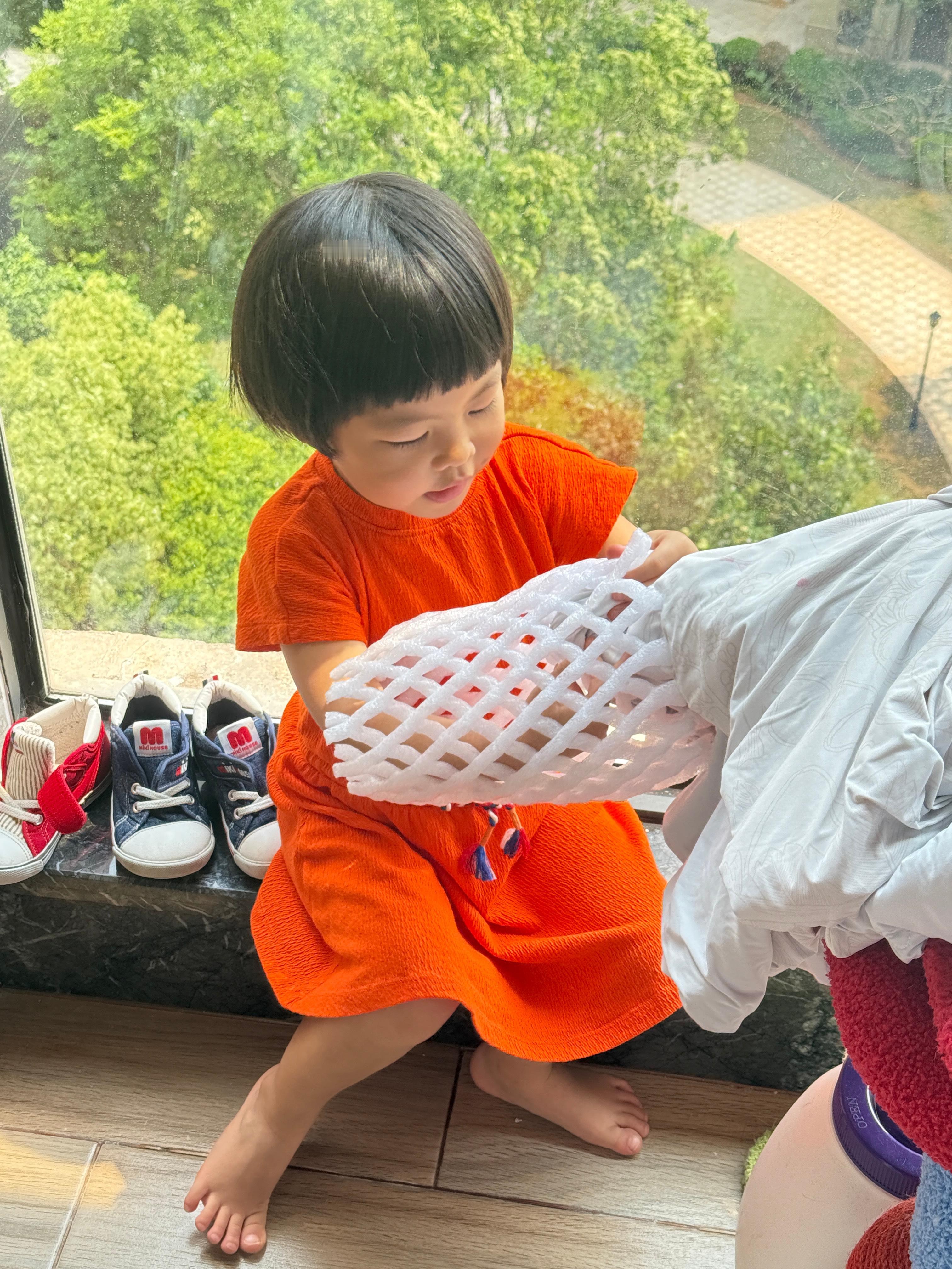 我已经很久没有买玩具了前两天去商场我还问球要不要逛玩具店,球说不要,家里的玩具太多。而且她本身也不咋玩玩具,更喜欢玩一些破烂比如这个泡沫网,玩两天了,乐此不疲