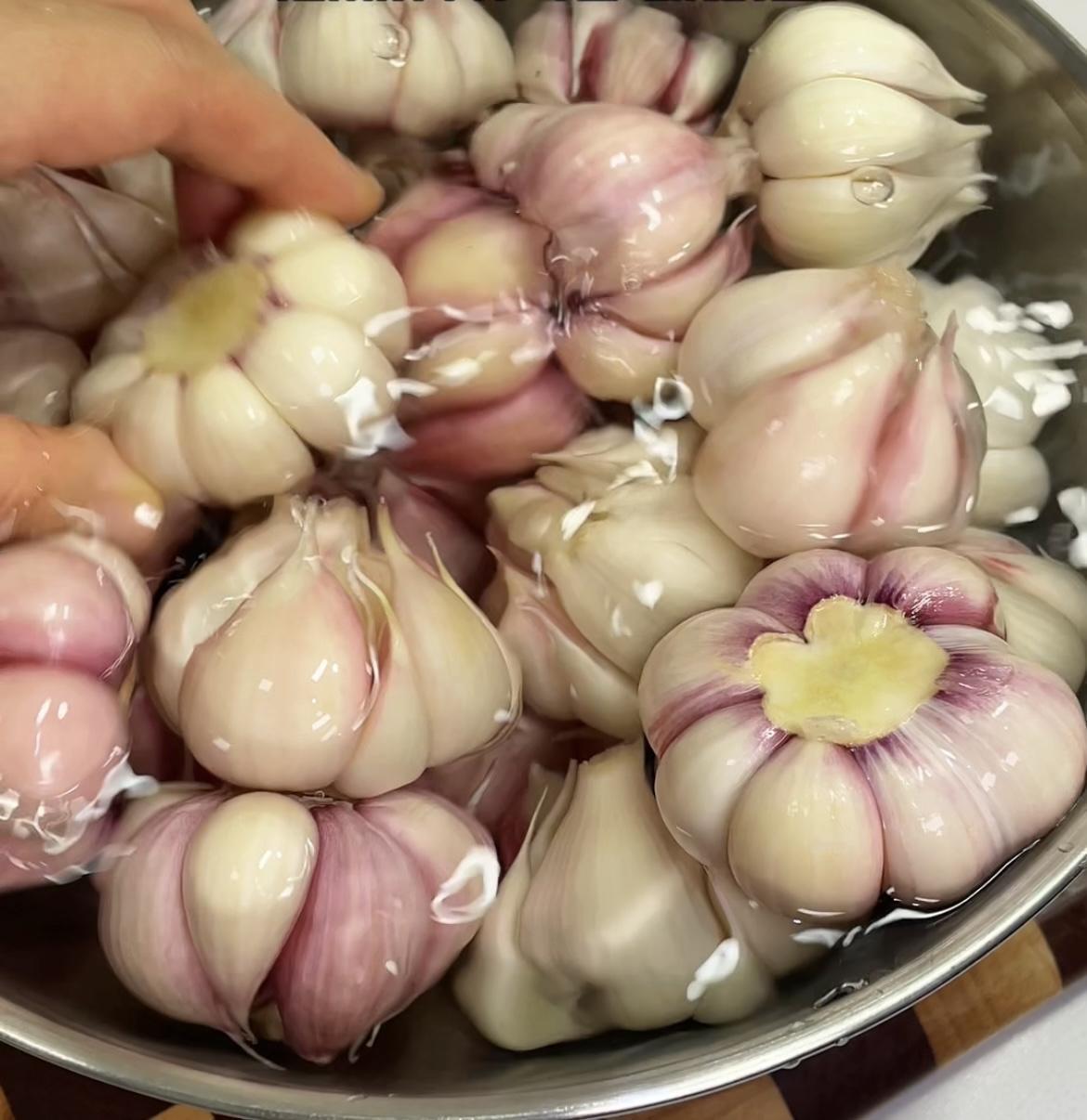 四、泡好的大蒜,水里面如果有脏物,再用凉白开或者纯净水清洗一遍,如果水很干净,可省略洗的这一步;