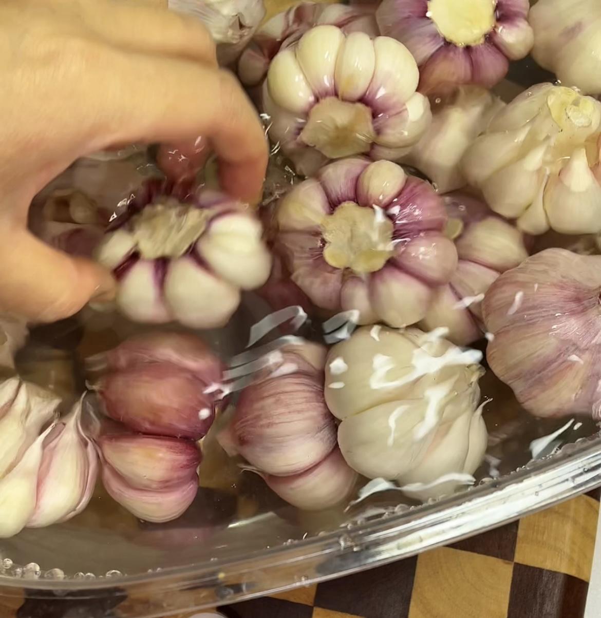 五、头朝上,蒜瓣朝下放置一晚晾干水分;