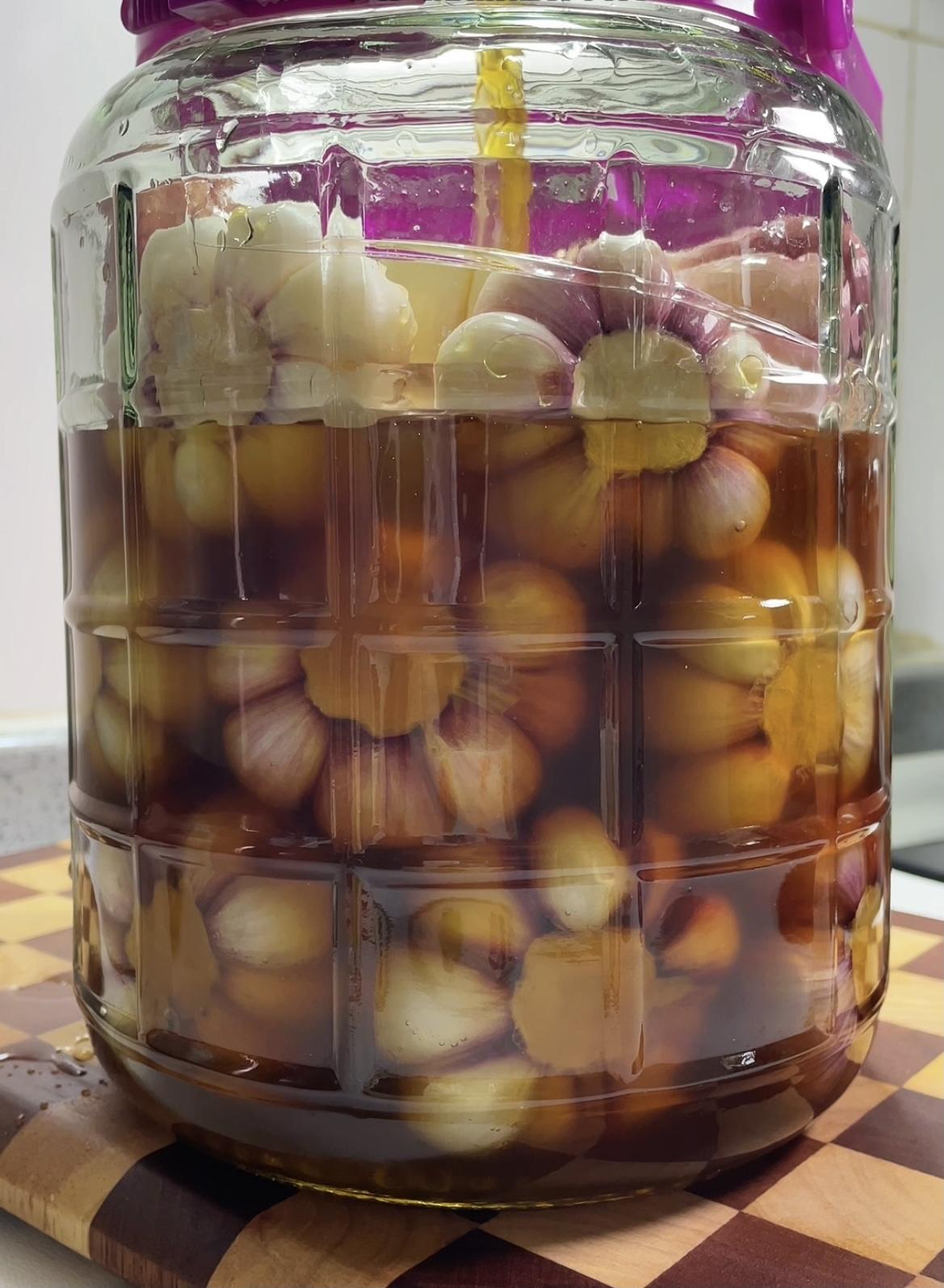 八、2斤大蒜这个比例汁刚刚好,一定要将大蒜完全浸泡在汁里面!