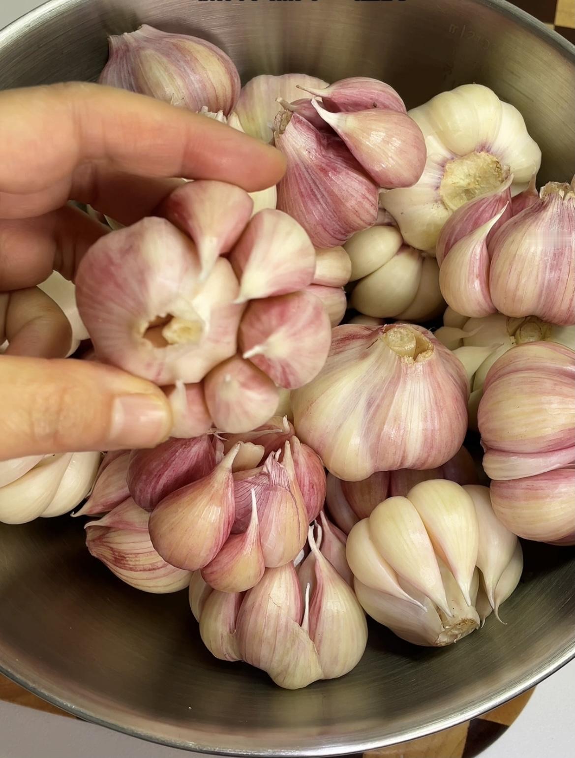 一、2斤新鲜嫩紫皮大蒜(剥皮后重量);