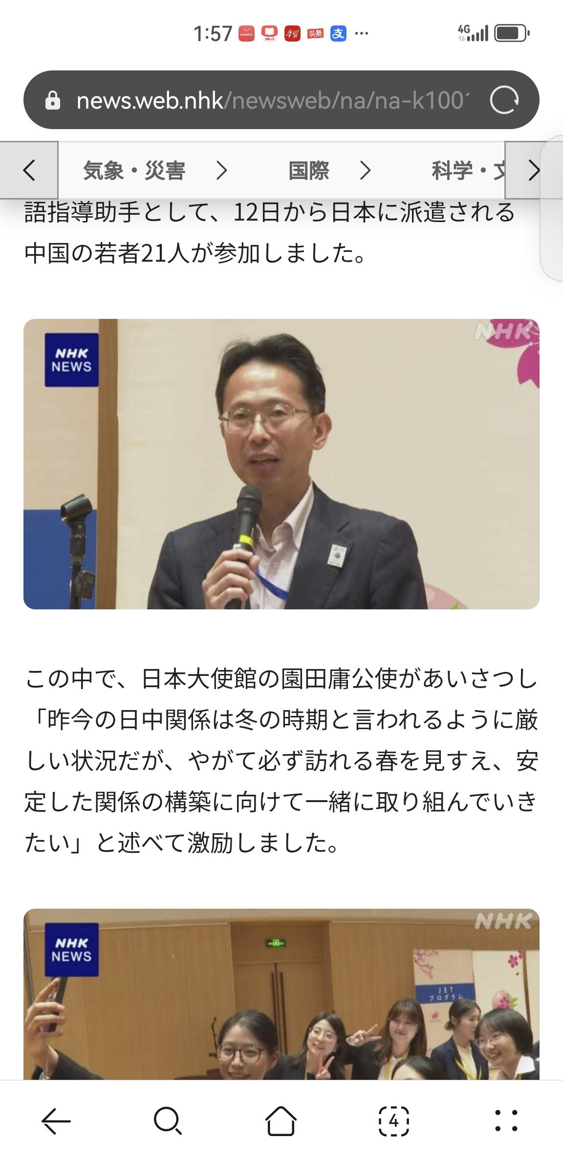 在当前中日人员交流整体遇冷的背景下,日本驻华公使园田庸在致辞中表达了对青年们的期望。他强调,希望大家着眼“即将到来的日中关系的春天”,为构建稳定的双边关系共同努力。