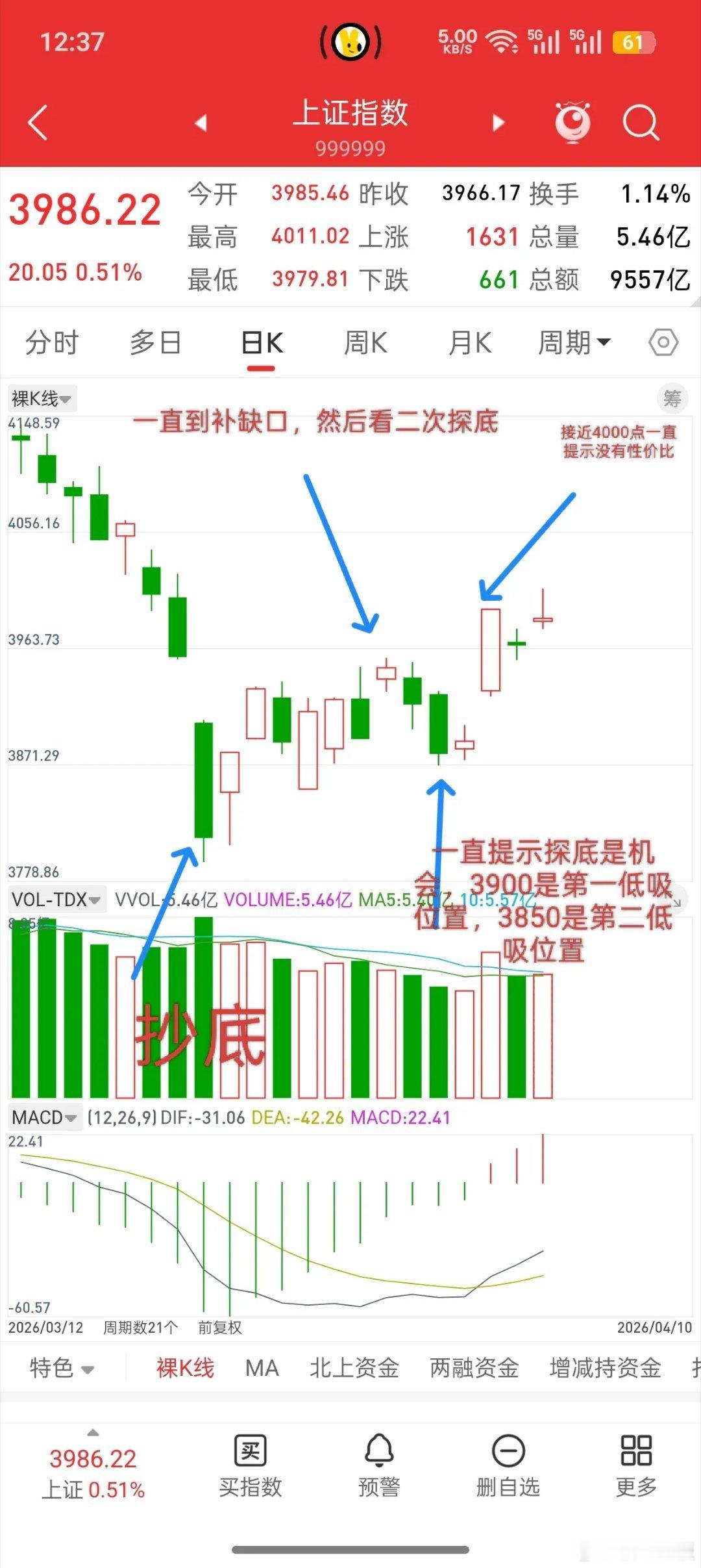 从3.23号提示抄底,说短线目标看3955,中线目标看4025,再到4.1号行情补缺口3955,提示减仓,等回调再进,一直到清明节前和节后第一天,强调大盘无忧,3900附近是第一低吸位置,3850是第二低吸位置,再到本周三大涨,接近4000点,提示,当前没有性价比,想开新仓等二次回踩。