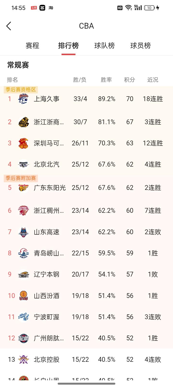 之所以关键就是广东队目前并列排名第四位,实际排名第五位,已经丢出前四。