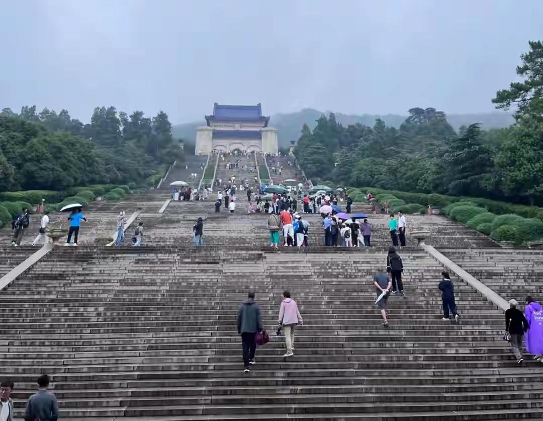 有游客看他年纪大、走得辛苦,想上前帮他拿背包,他轻轻摇了摇头,用带着闽南腔的普通话低声说了句“无要紧”,声音有些沙哑,但很坚定。他不是第一次来中山陵,这是他第三次踏上这392级台阶。前两次,他也是这样,一步步走上来,只是这次,他更老了,身体更弱了,每一步都比以前更费力。