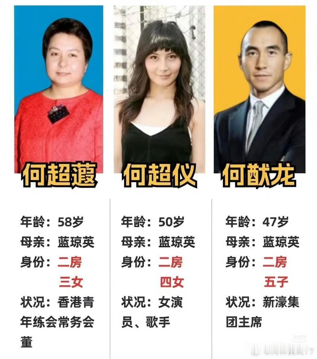 何超琼最低调的妹妹,何家二房有何超琼,何超蕸,何超凤,何超仪,何猷龙5个子女,何超蕸排行老二。