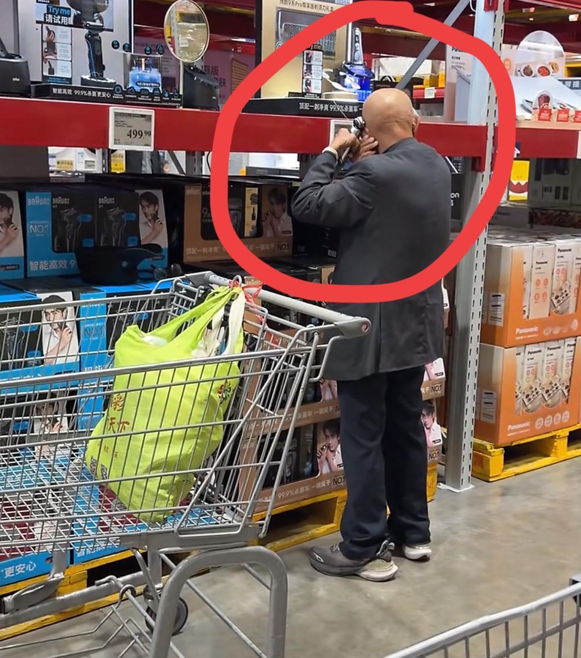 一上海的大爷竟然拿着山姆的剃须刀给自己剃头,这也太不拿人家的商品当回事了吧。4