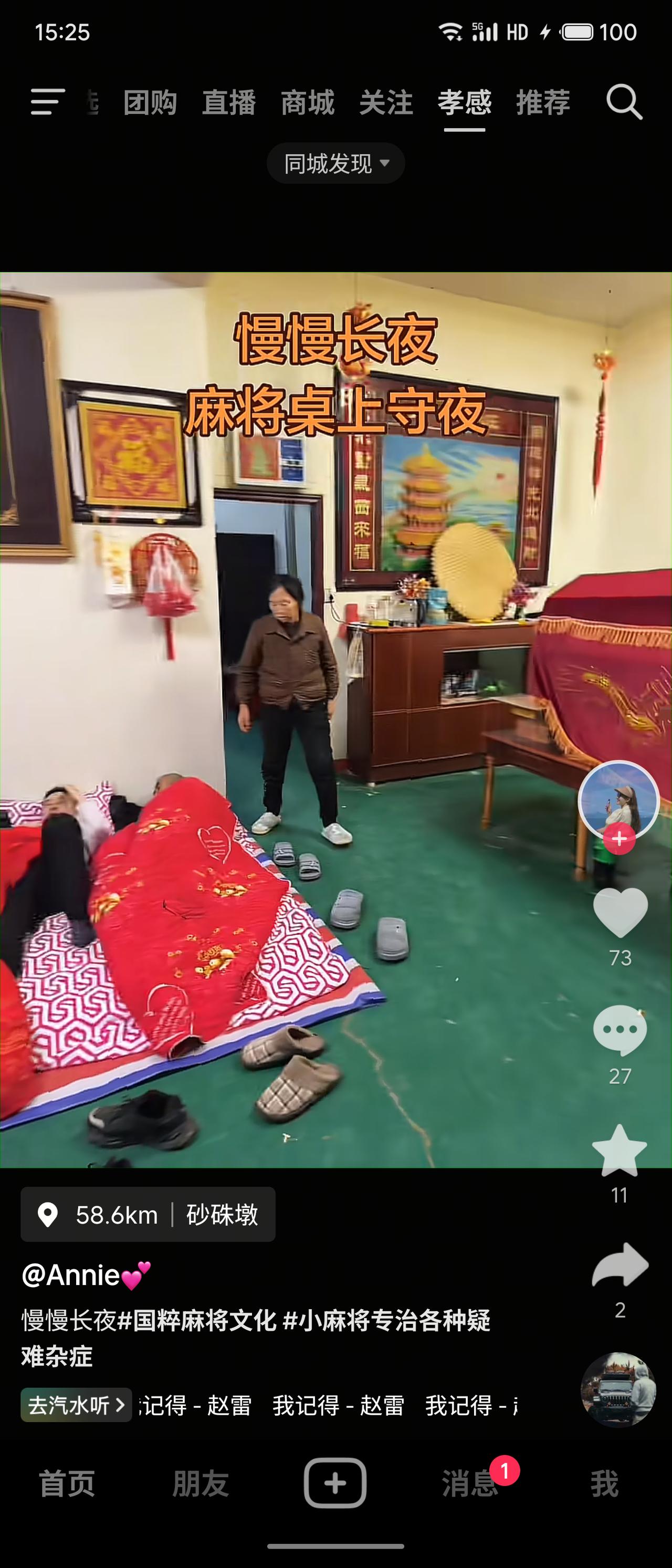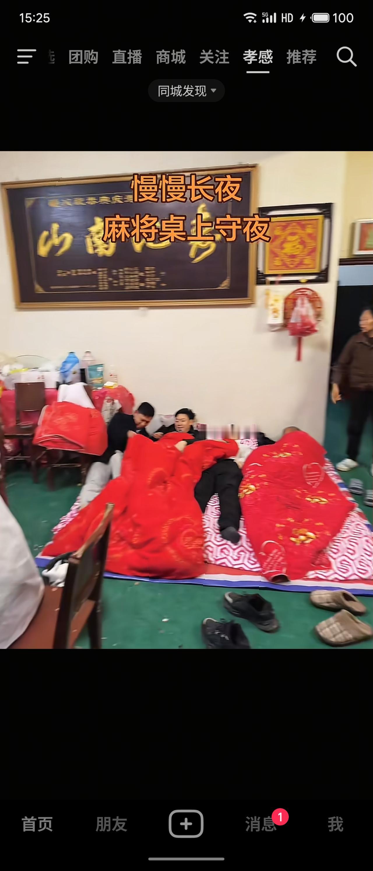在孝感农村,白喜事(高龄老人去世)的守灵习俗别具人情味。直系孙子辈通常会在灵堂客厅里摆开麻将桌,一改哀痛形式边打牌边守夜。视频中客厅侧墙上挂着“寿比南山”四字,明显是其后人们寄托对逝者生前祝福。老人的棺材安放在客厅前方,棺前设有香火。不想打牌的晚辈就在一旁打地铺休息。打麻将的人轮流留意香火,确保香烛接续不灭,直到第二天天亮。