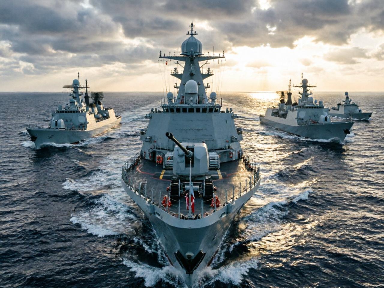 东部战区海军某驱逐舰支队新列装的055型驱逐舰安庆舰,以及丽水舰、滨州舰等多艘舰艇,在东海某海域开展高强度、多课目实战化训练,为提升编队远海作战能力打下坚实基础。