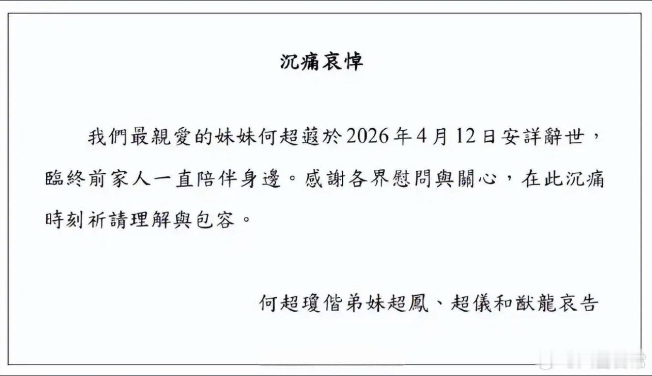 何超蕸去世