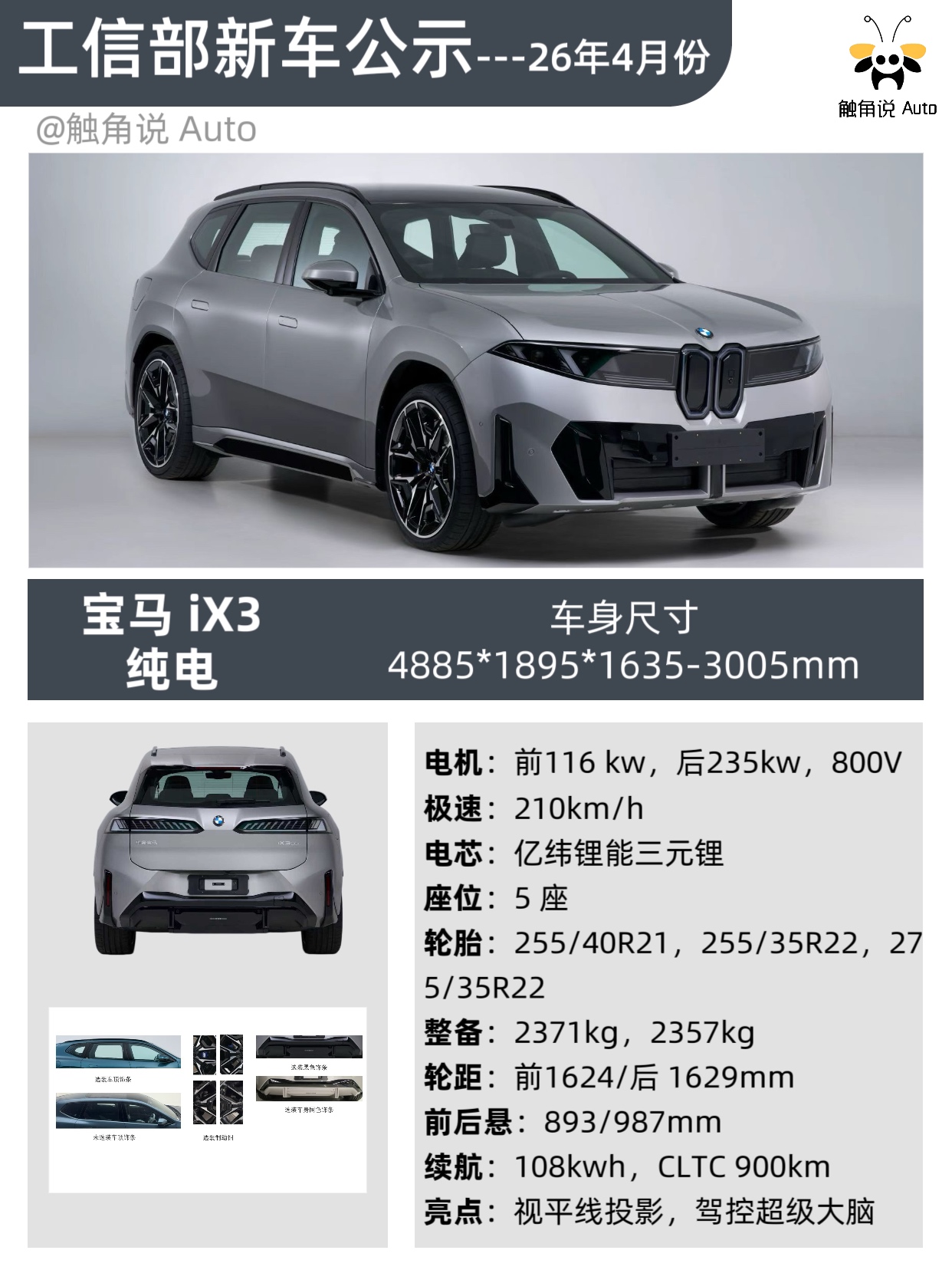 去年 9 月 5 号海外亮相的宝马 iX3 终于国内新车公示了,预计新车将会在北
