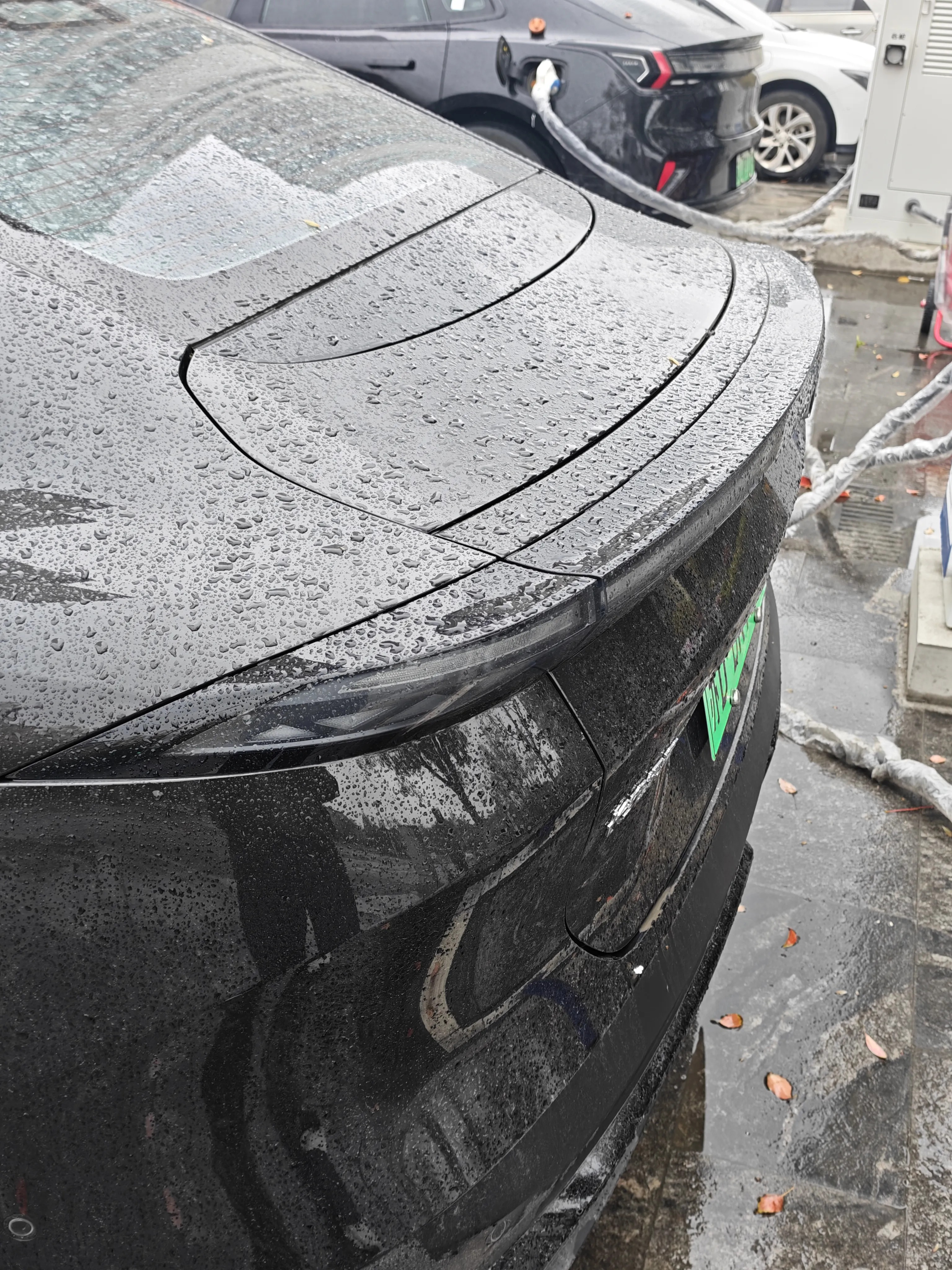 苍穹黑的车身在阳光下质感拉满,前脸标志性的星刃大灯搭配封闭式格栅,未来感十足;溜背轿跑线条搭配无框车门,19英寸运动轮毂自带运动气场,哪怕停在路边,也自带吸睛属性。车尾的电动尾翼更是点睛之笔,雨天自动升起时,不仅能提升高速行驶的稳定性,还让整车颜值再上一个台阶,贯穿式尾灯点亮后辨识度拉满,日常拍照打卡、社交平台分享,每一张都出片。