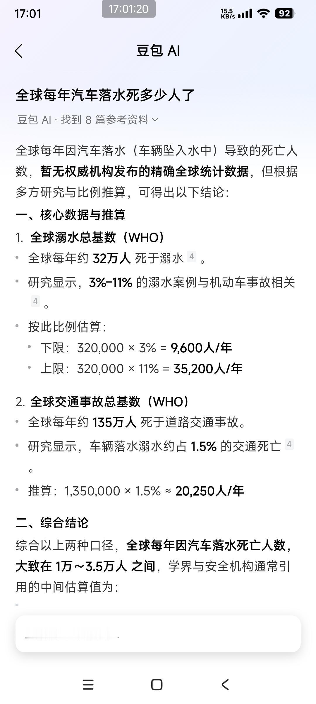 全球每年因汽车落水死亡人数,大致在 1万~3.5万人 之间
